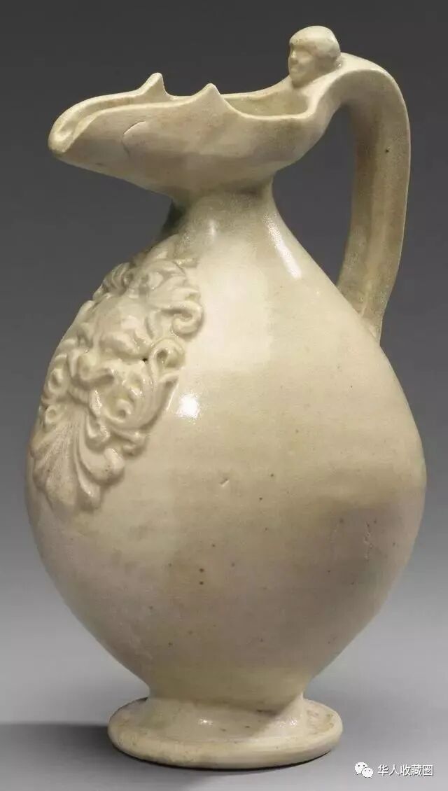 隋~唐代 白釉塑贴狮纹凤首壶,高21cm