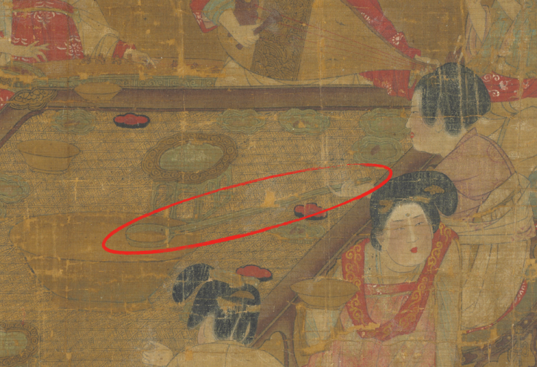 唐代《唐人宫乐图》台北故宫藏请认真看看右边坐着的第三位仕女,她喝酒那是相当豪放,用一把长杓从一个大盆中舀取饮用。