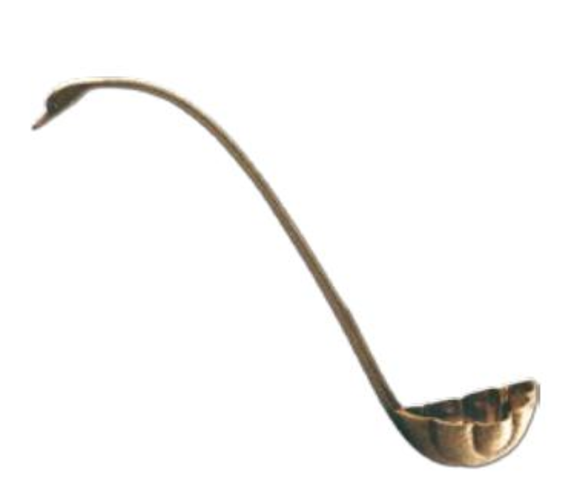 它不仅有弯曲修长的杓柄,还在长柄的尾部做了一个形似鸬鹚鸟首的装饰,那就显得更为生动而有有趣了。