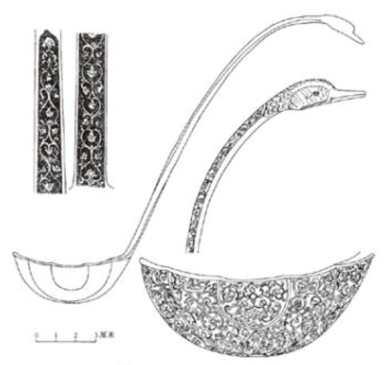 唐代鸬鹚杓,芝加哥美术馆藏1983年河南省偃师市杏圆村的唐墓中就出土过这么一件鸬鹚杓。